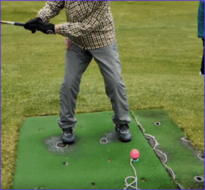 ボールを打たずに、フィニッシュで「左足一本で1秒静止」を繰り返す。