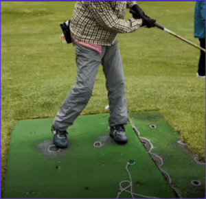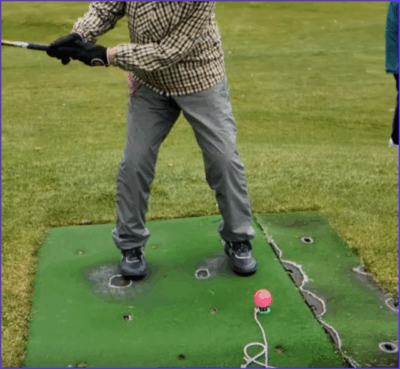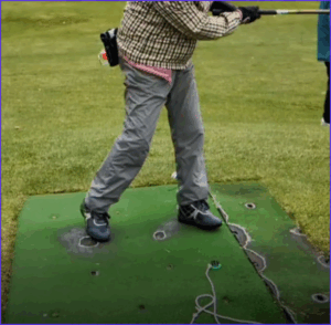 → 改善:骨盤の回転でスイングをリードし、左足の内側でしっかり“踏ん張って止める”感覚をつくる。