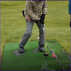 目的:狙ったラインに対して体の向きとスイング軌道を一致させる。