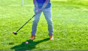 2 クラブをかぶせ気味にして、インパクト後にクラブを止め、送り出さない。